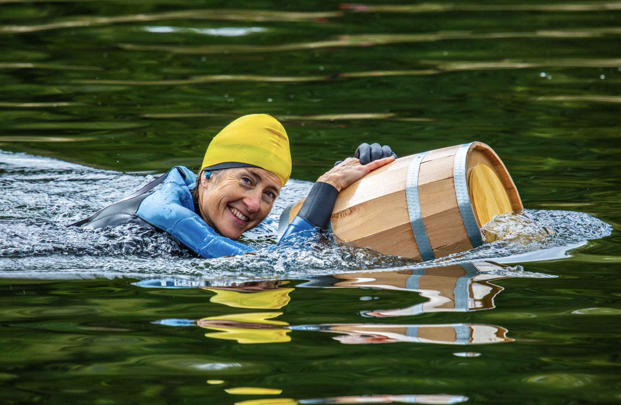 La Tonn’eau est une course relais de nage avec palmes, où s’affrontent 20 équipes de 4 nageurs. L’objectif de chaque équipe est de réaliser la plus grande distance en nageant avec un tonneau comme flotteur pour fêter les vendanges en Alsace !
